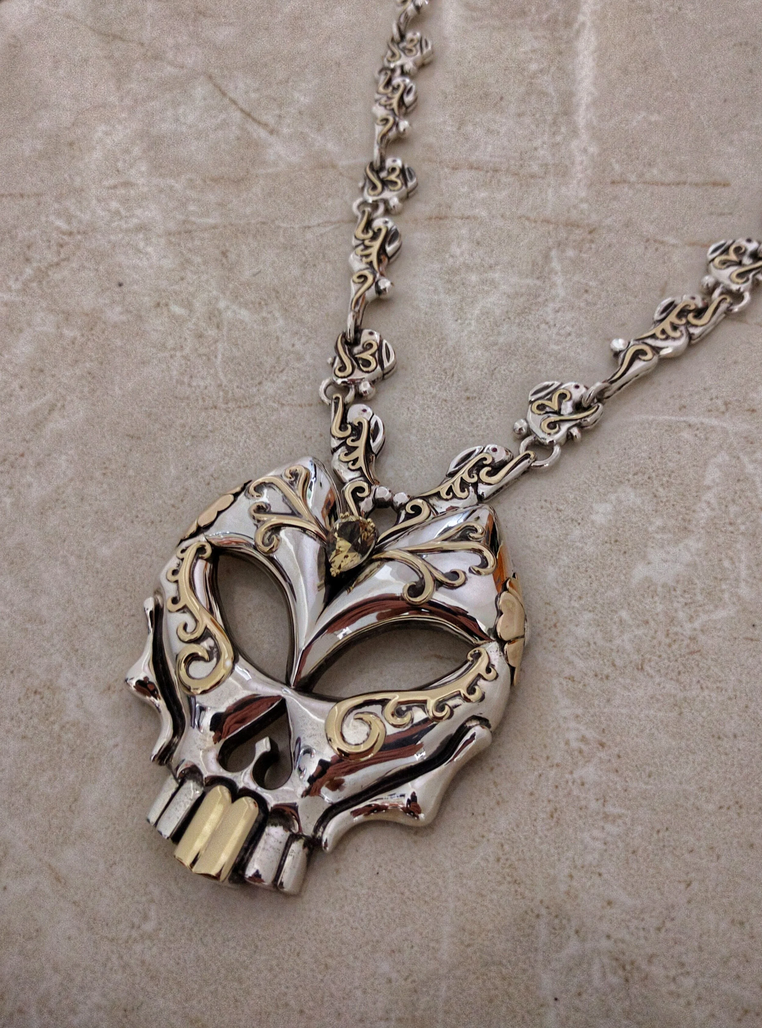 While living in LA, Kevin and Kristian met up to design a new piece that Kristian had expressed interest in creating – something for him to wear while performing live. The new piece was to be an MK II version of the Rabbit Reaper Skull.