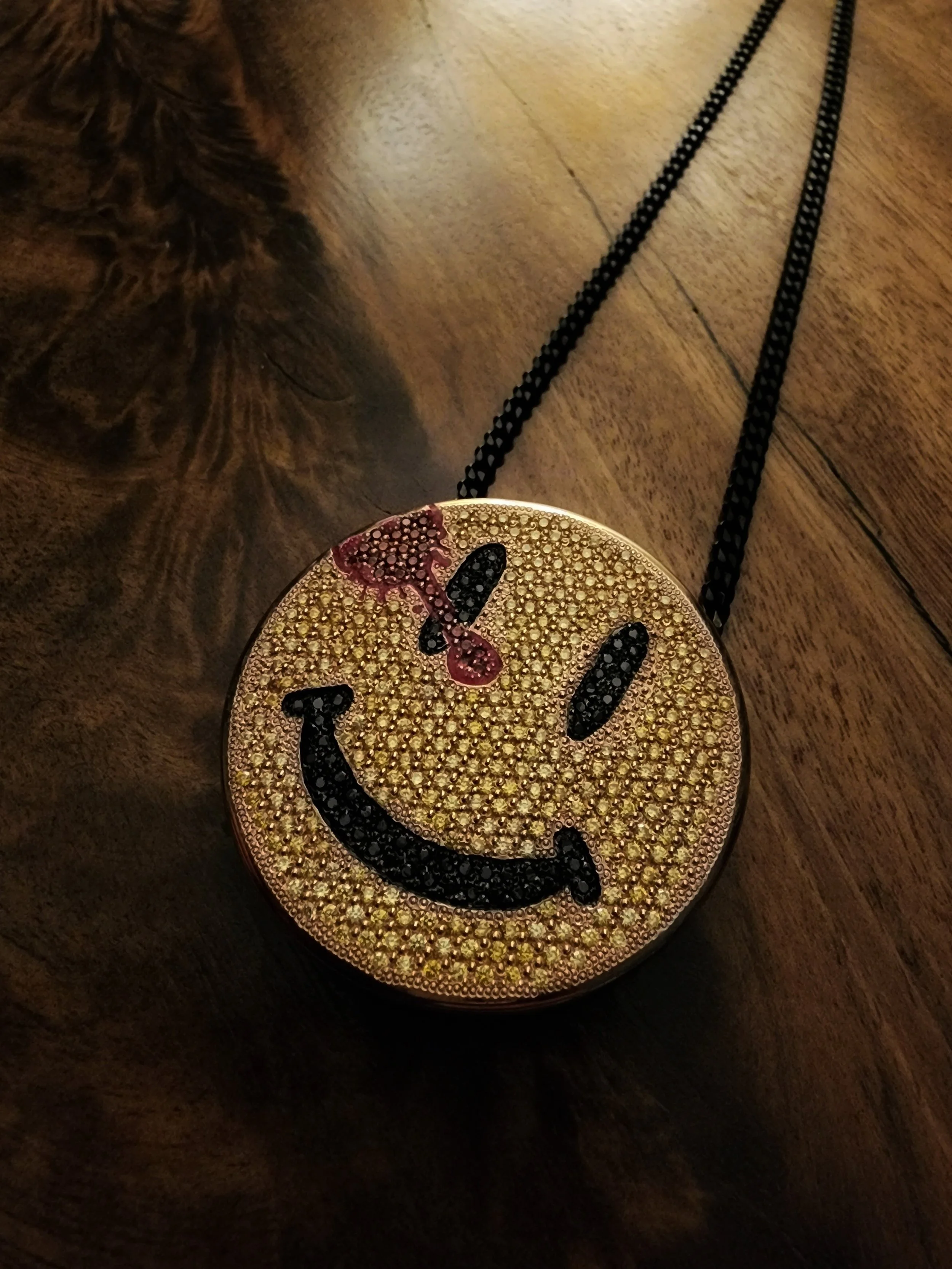 Kevin made this Watchmen inspired smiley chain to wear for the walkout to his second amateur boxing match. The piece showcases Kevin’s skill in pave gem setting as you can see in the video below.